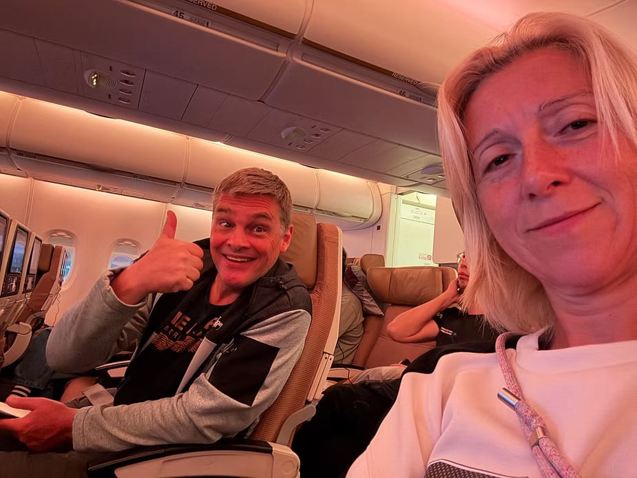 Gelukkig: op beide vluchten (7,5u en 7u) konden we wat slaap meepikken.